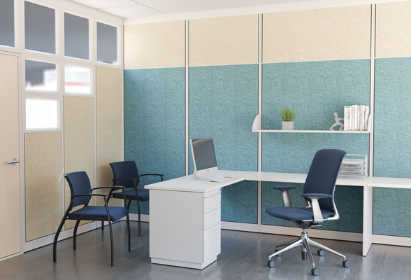 Let the light shine through your offices with panels fully glazed in clear, smoked, or frosted acrylic. Partially glazed panels are also available with a fabric lower half.